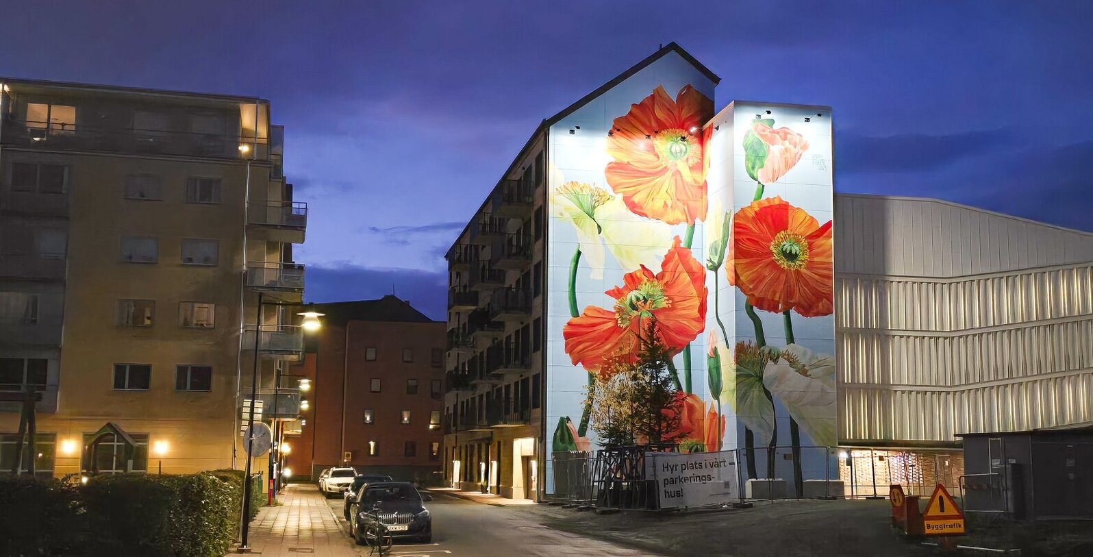 Som en del av jubileumsåret fick en 300 kvadratmeter stor fasad i Östermalms Park ett vackert konstverk föreställande vallmor mot en klarblå himmel. Målningen, skapad av muralkonstnären Malin Sparrvardt, har blivit ett nytt blickfång i området.